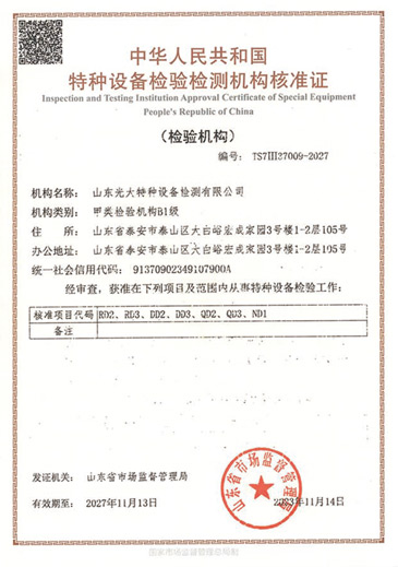 【特種設(shè)備檢驗資質(zhì)和檢驗范圍】 RD2 定期檢驗:第一、二、三類固定式壓力容器(不含超高壓容器,大型高壓者器、球形儲罐) RD3定期檢驗:第一、二類固定式壓力齊器(不含球形儲罐) DD2定期檢驗:公用管道 DD3定用檢:工業(yè)管道 QD2 定期檢驗:塔式起重機(jī)、流動式起重機(jī),門座式起重機(jī),升降機(jī),纜索式起重機(jī)、梔桿式起重機(jī),額定起重量小于 10T(不含10T)的橋式起看機(jī)和門式起重機(jī) QD3定期檢驗:流動式起重機(jī),塔式起重機(jī),升降機(jī) ND1定期檢驗:場(廠)內(nèi)專用機(jī)動車...